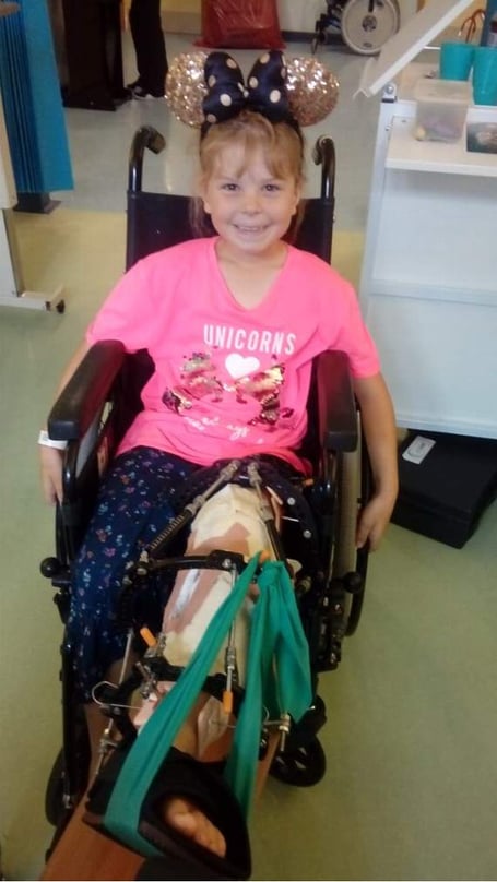 Lydia had been involved in a farming accident and sustained injuries to her leg. However, she was quickly airlifted to Bristol Children’s Hospital where after extensive surgery, her leg was remarkably rebuilt.