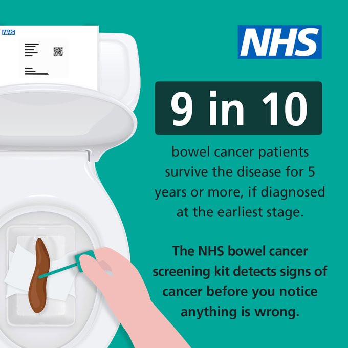 Everyone aged 60 to 74 years who is registered with a GP and lives in England is automatically sent an NHS bowel cancer screening kit every 2 years.