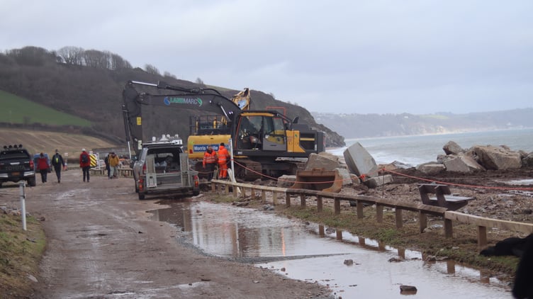 In response, South Hams District Council commissioned Landmarc, coastal defence specialists, to carry out urgent remedial works. A recovery operation is now underway to re-position rock armour along the seafront that was displaced during the storms, with the aim of restoring protection as quickly as possible.