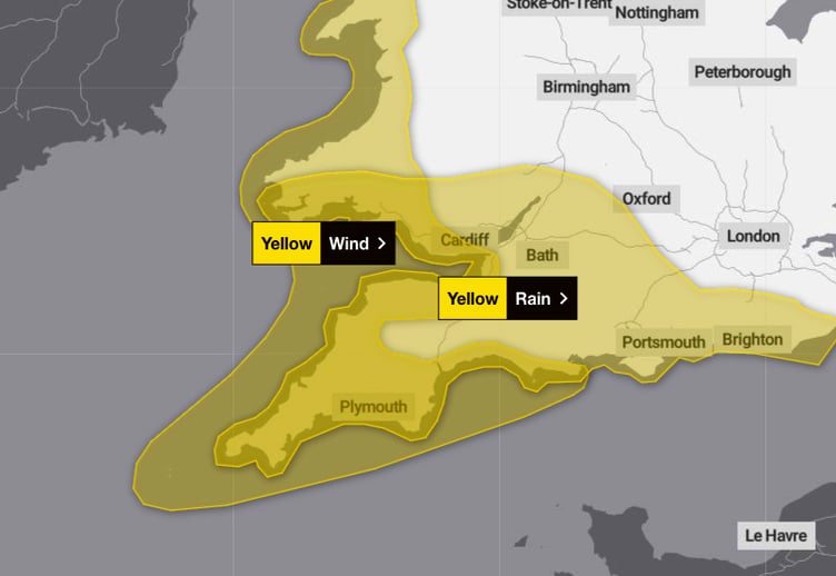 The Met Office has issued a yellow weather warning for heavy rain and strong winds effective from 4pm today (September 28).