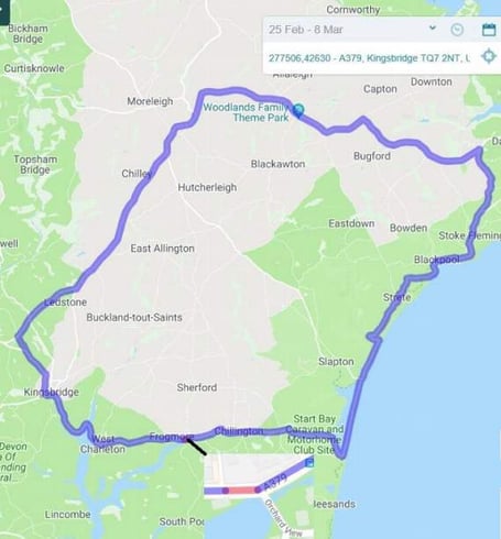 The diversion, which has to be via A-roads, will be along Slapton Line to Dartmouth and back round Ledstone and Kingsbridge, and vice versa - A379, A381, A3122.