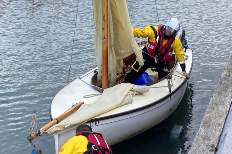 Salcombe Inshore Lifeboat launched recently to rescue a man in the water and recover his capsized sailing boat.