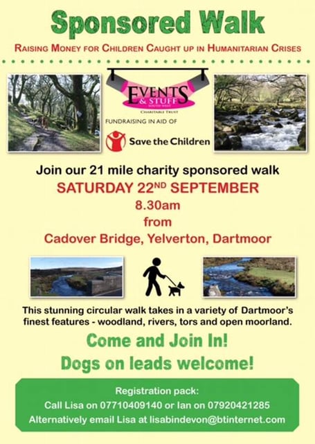 Lisa Butcher, Chillington, has organised a 21 mile sponsored walk starting at Cadover Bridge, Yelverton, at 8.30am on Saturday, September 22.