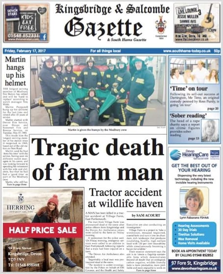 This week’s lead story is news of a tragic tractor accident on a local farm.